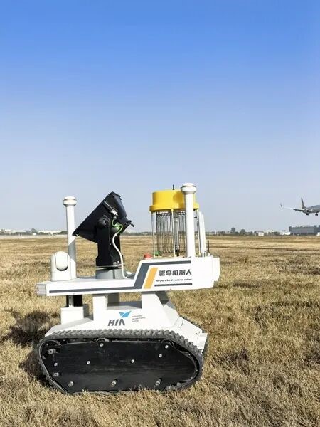 杭州机场上新全国首台套履带式智能驱鸟机器人